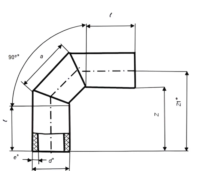 Модель Отвод сварной PN12,5 трехсегментный ПЭ100 SDR 13,6 63 мм
